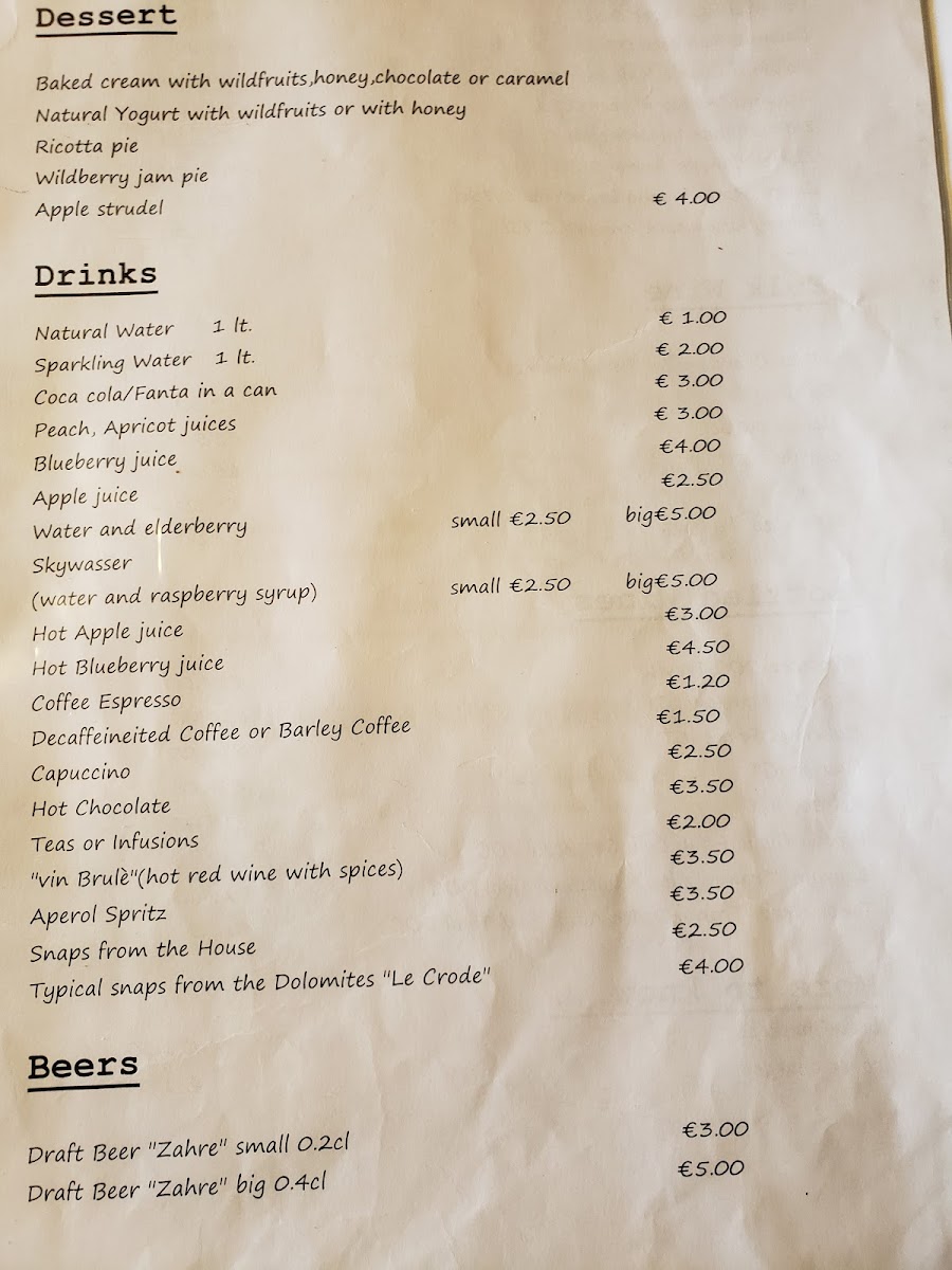 The menu at Malga Sanon offers a warm and inviting selection rooted in traditional Alpine flavors, presented in a straightforward, comforting café style. Guests can expect hearty dishes and simple, satisfying drinks that complement both leisurely lunches and relaxed afternoon breaks amidst scenic mountain views.